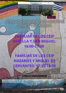 Con motivo del día del padre el 19 de marzo, habrá un mercadillo en los recreos del martes 18 y miércoles 19. La recaudación irá destinada a la asociación “Granada por África” para colaborar en la construcción de un pozo. A esto sumaremos lo recogido en los mercadillos del día de los Enamorados y de la madre, en mayo.